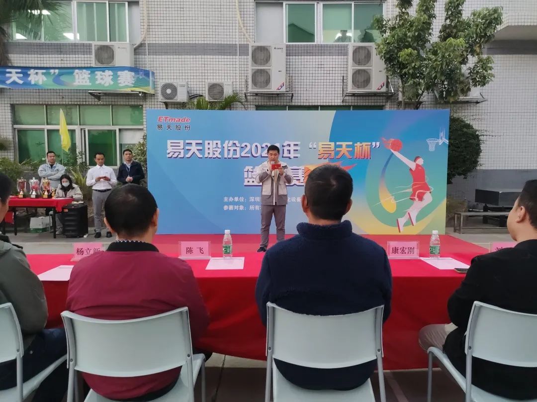 晚上在公司篮球场,公司总经理高军鹏携一众高管莅临开幕式现场并宣布篮球赛正式开始!