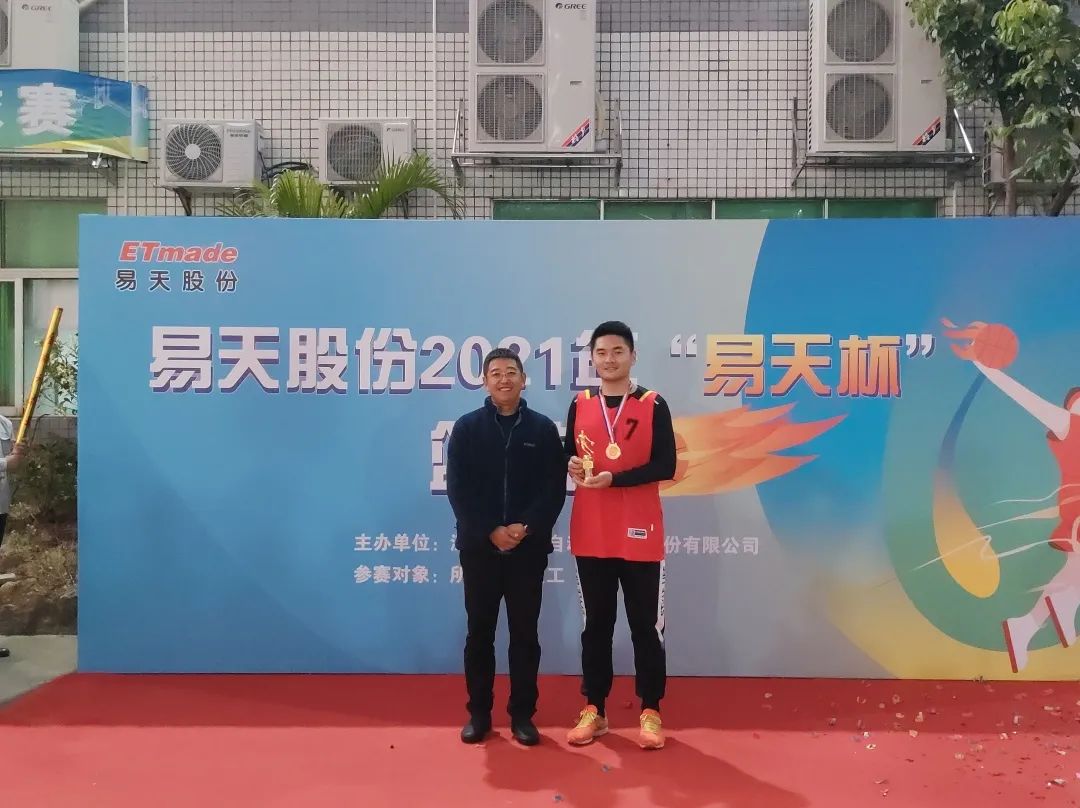 接下来颁发的是本届篮球赛的亚军,邀请公司副总经理陈飞为制造中心队颁奖,奖品为亚军银牌、奖杯、现金1000RMB。
