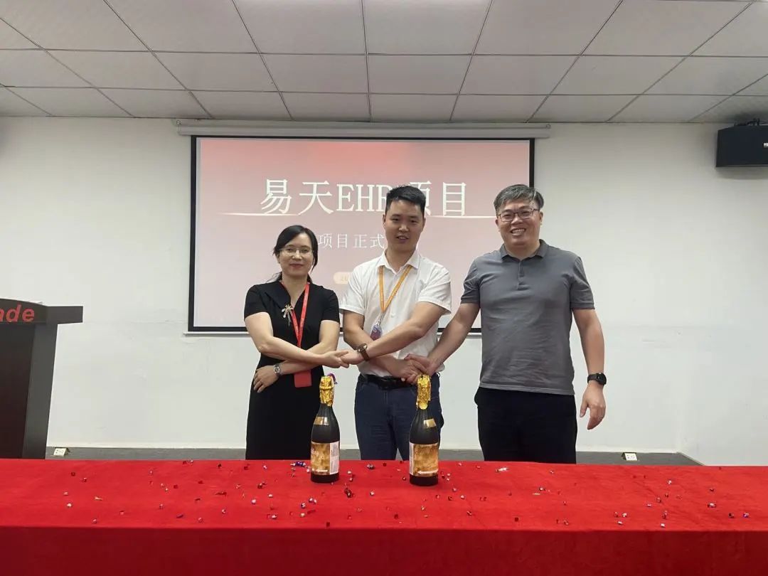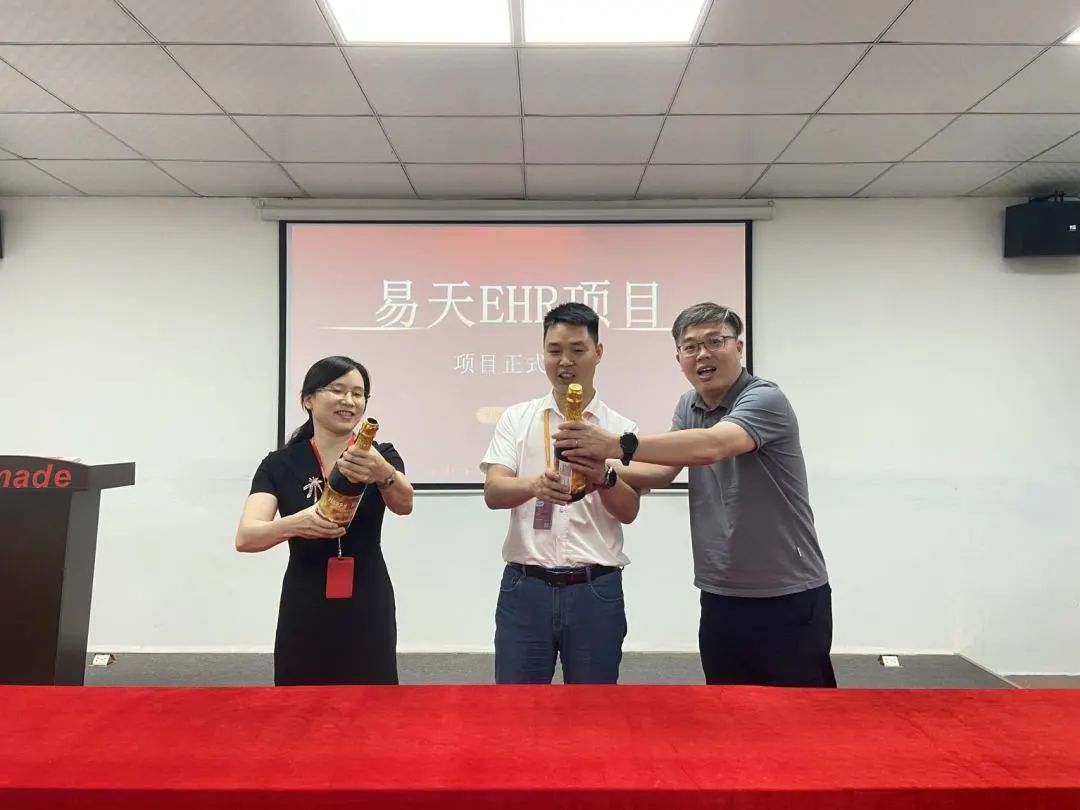 议程最后,由万达宝华南区负责人江总、财务总监刘总、副总经理张总共同打开象征着庆祝与欢乐的香槟礼花,随着礼花的喷洒而出,DB视讯人力资源管理项目已正式拉开帷幕。